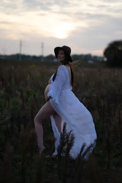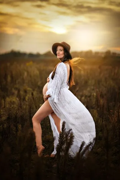 Kurs Photoshop Sesja ciążowa w plenerze boho o zachodzie słońca